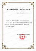 廈門市高層次留學(xué)人員身份認定證書